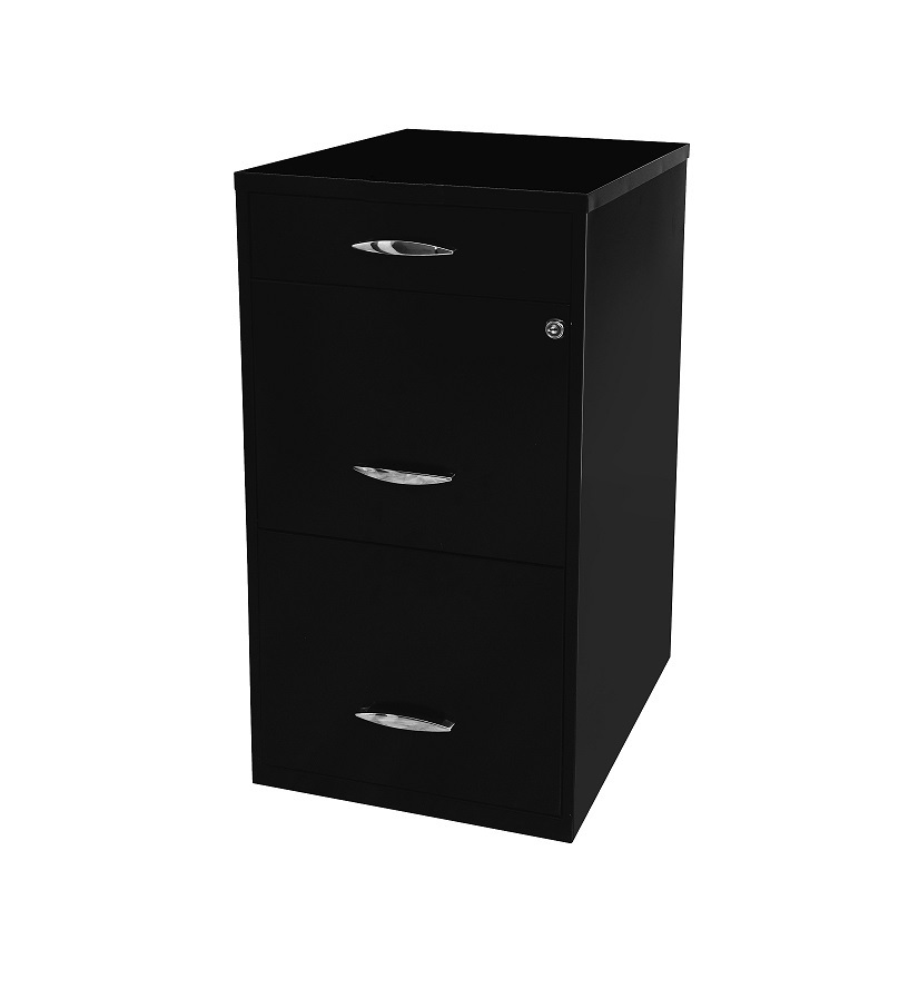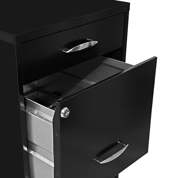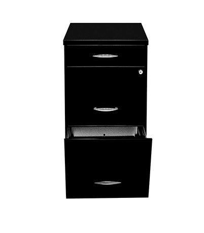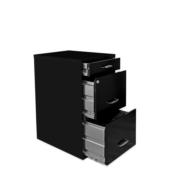 Archivero metálico con 3 gavetas tamaño carta. Fabricado en lamina calibre 28, correderas sencillas. 2 cajones de archivo y 1 papelero tamaño carta, gaveta media con cerradura y juego de llaves (solo cierra las dos gavetas superiores). Pintura horneada en exterior e interiores galvanizados. Manijas galvanizadas con bordes cromados.