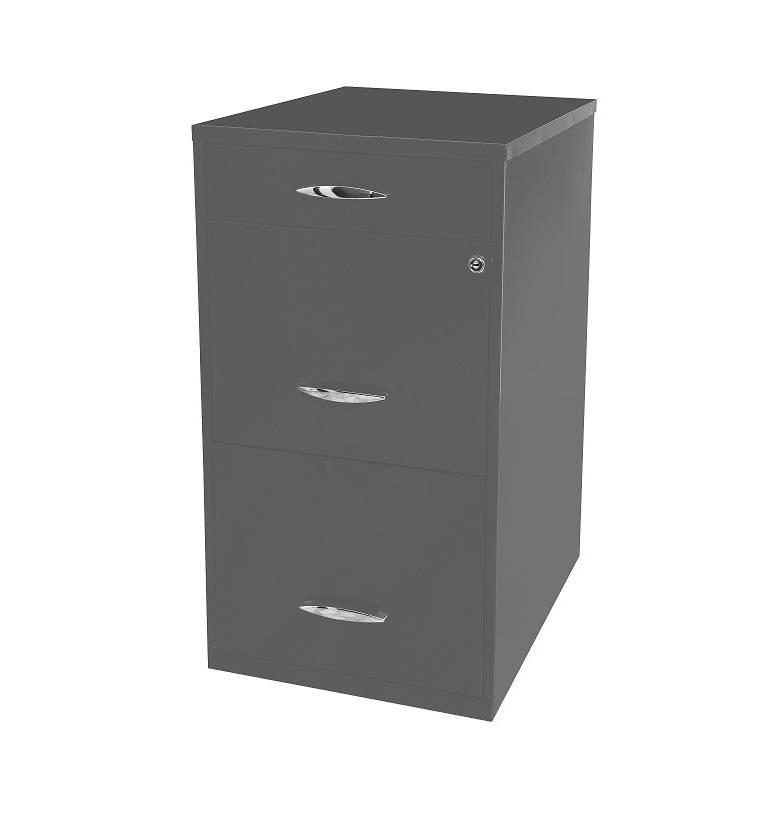 Archivero metálico con 3 gavetas tamaño carta. Fabricado en lamina calibre 28, correderas sencillas. 2 cajones de archivo y 1 papelero tamaño carta, gaveta media con cerradura y juego de llaves (solo cierra las dos gavetas superiores). Pintura horneada en exterior e interiores galvanizados. Manijas galvanizadas con bordes cromados.