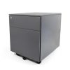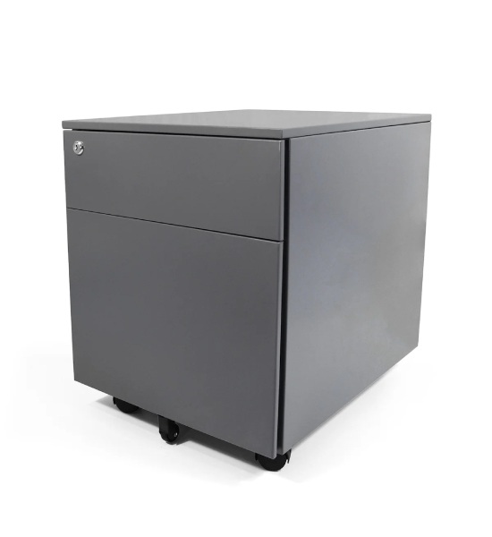 Archivero metálico móvil con 2 gavetas tamaño carta. Fabricado en lamina calibre 24, correderas sencillas. 1 cajón de archivo y 1 papelero tamaño carta con cerradura. Pintura horneada. En color: grafito o blanco.