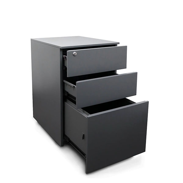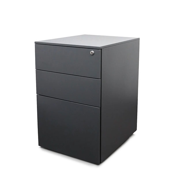 Archivero metálico con 3 gavetas tamaño carta. Fabricado en lamina calibre 24, correderas sencillas. 1 cajón de archivo y 2 papeleros tamaño carta con cerradura. Pintura horneada. En color: grafito o blanco.