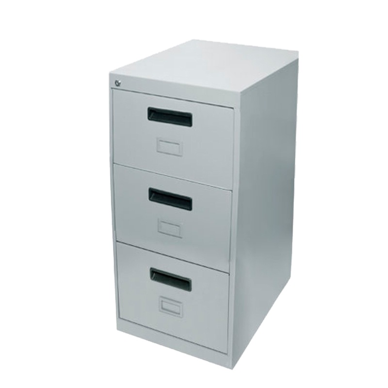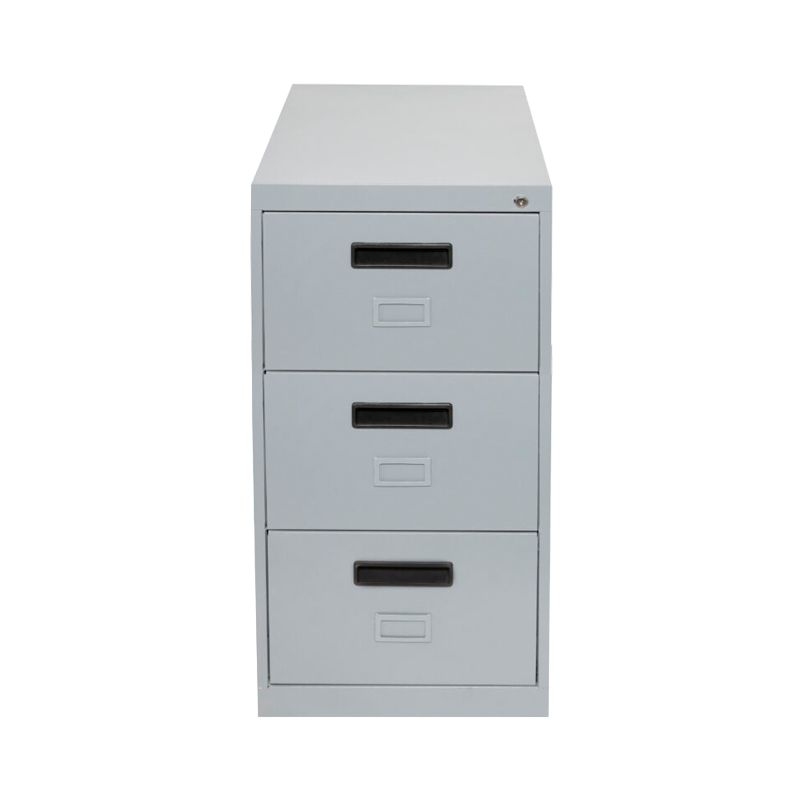 Archivero metálico vertical fabricado con lamina de acero rolada en frio calibre 24 SAE 10-08 de primera calidad. Fabricado en serie bajo medidas estándar. El cuerpo y las gavetas son ensamblados mediante soldadura por resistencia. Las gavetas se abren y cierran por medio de dos correderas metálicas de extensión.