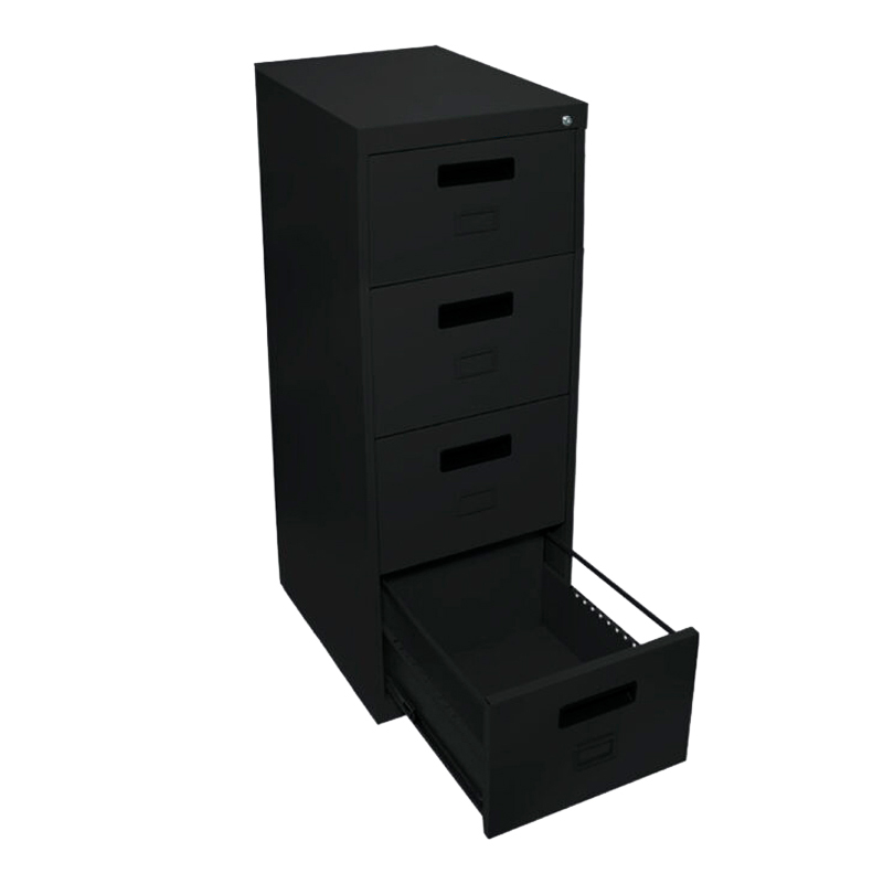 Archivero metálico vertical fabricado con lamina de acero rolada en frio calibre 24 SAE 10-08 de primera calidad. Fabricado en serie bajo medidas estándar. El cuerpo y las gavetas son ensamblados mediante soldadura por resistencia. Las gavetas se abren y cierran por medio de dos correderas metálicas de extensión.