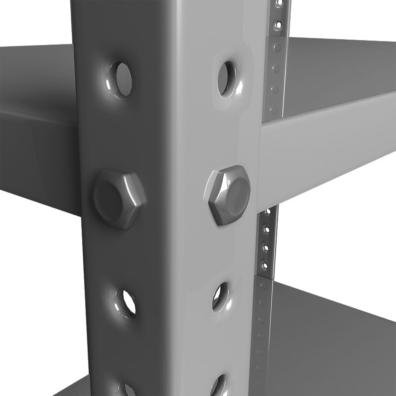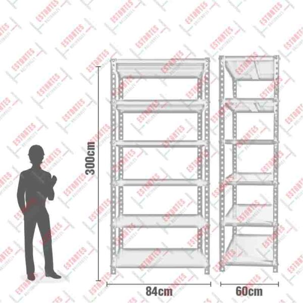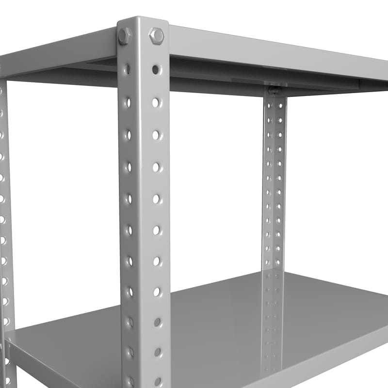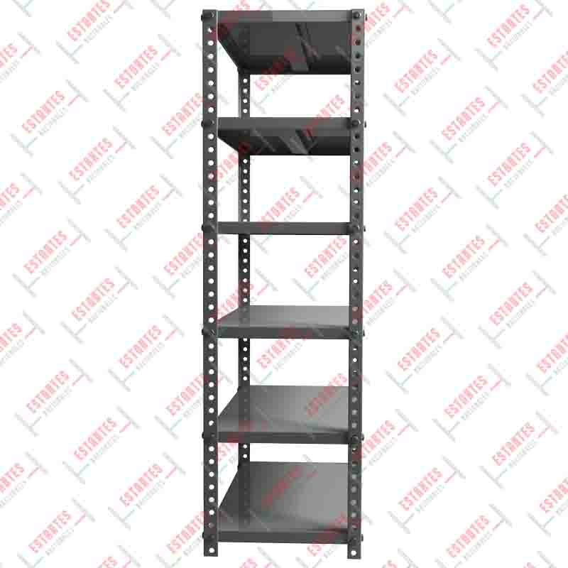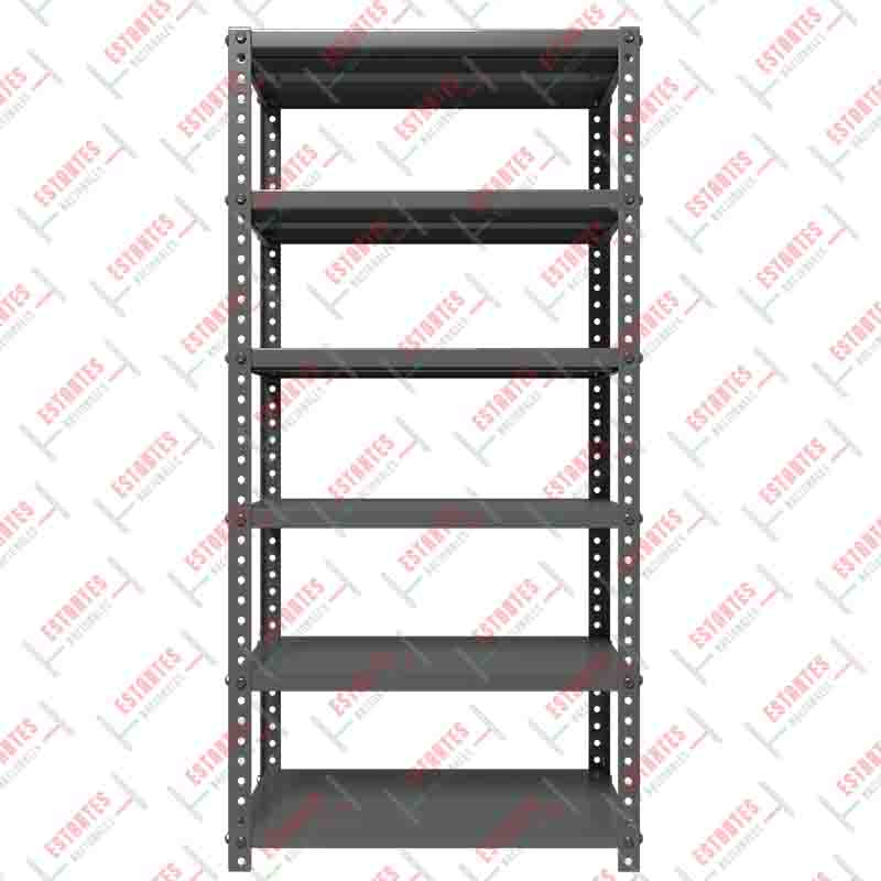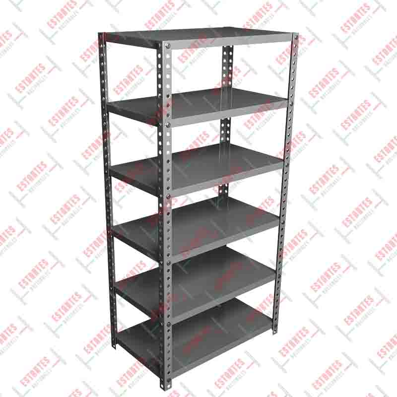 Estante de 6 entrepaños calibre 22 con refuerzo, postes cal. 14, Fabricado en lámina de acero rolada en frío acabado de pintura en polvo aplicada electrostáticamente y termoendurecida a 200°C