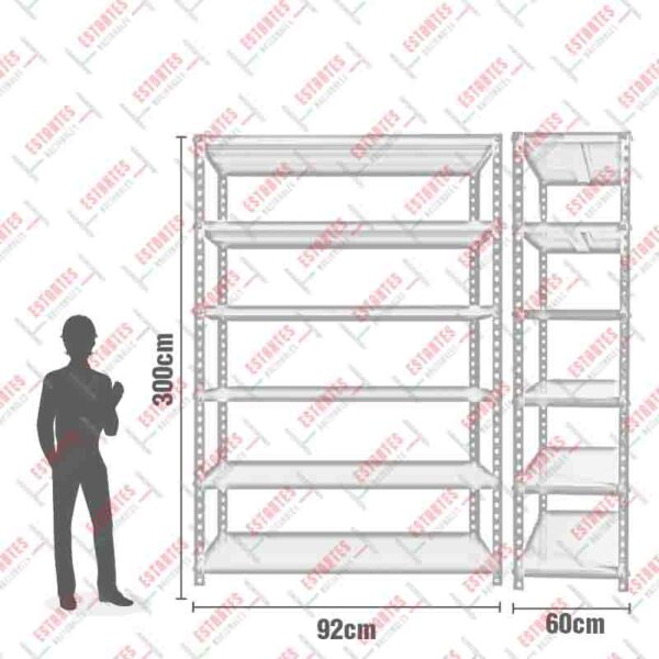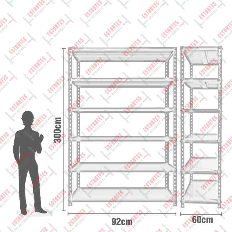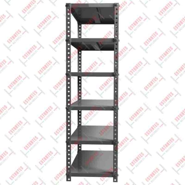 Estante de 6 entrepaños calibre 22 con refuerzo, postes cal. 14, Fabricado en lámina de acero rolada en frío acabado de pintura en polvo aplicada electrostáticamente y termoendurecida a 200°C