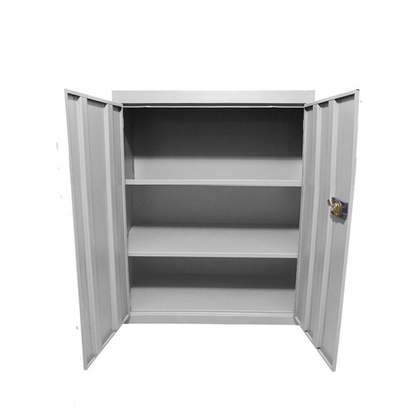 El cuerpo y las puertas son ensamblados mediante soldadura por resistencia. Cuenta con entrepaños fijos reforzados para mayor resistencia en cada división. Dos puertas abatibles, las puertas de los gabinetes se abren y cierran por medio de tres bisagras, cada puerta cuenta con 2 refuerzos verticales. Una puerta lleva su cerradura empotrada fabricada en plásticos ABS tipo paleta, incluye dos llaves y su estiradera.